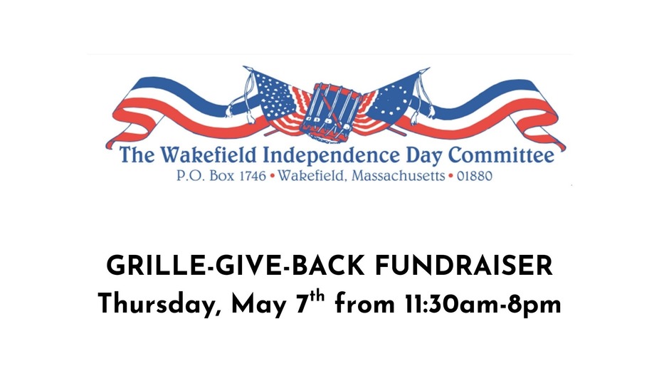 Come out and support the Wakefield Independence Day Committee. When you dine with us for this Grille Give Back, 20% of sales will go directly back to the Parade. Plus 250th t-shirts will be on sale!